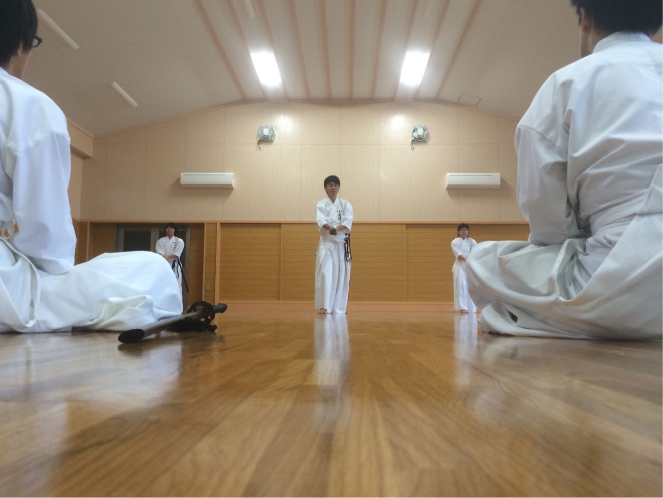昨日、合宿が終了したのでここに報告させていただきます。3日目は2回生による新入部員の制定指導と午後から古流体験会を行いました。我々2回生は指導に慣れていないため3回生の方々に教えてもらいながら自分なりの指導ができたと思います。